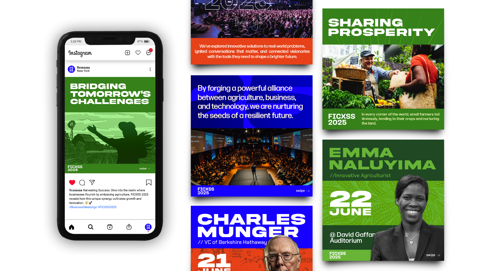 FICXSS 2025, a conference set in New York City in 2025. This unique event is designed to empower small and medium-sized businesses by combining business, agriculture, and technology to encourage innovation and collaboration. In this work, you'll find creative work that establishes the identity of FICXSS 2025, including billboard designs and more. These elements showcase the branding skills required for an event like this.